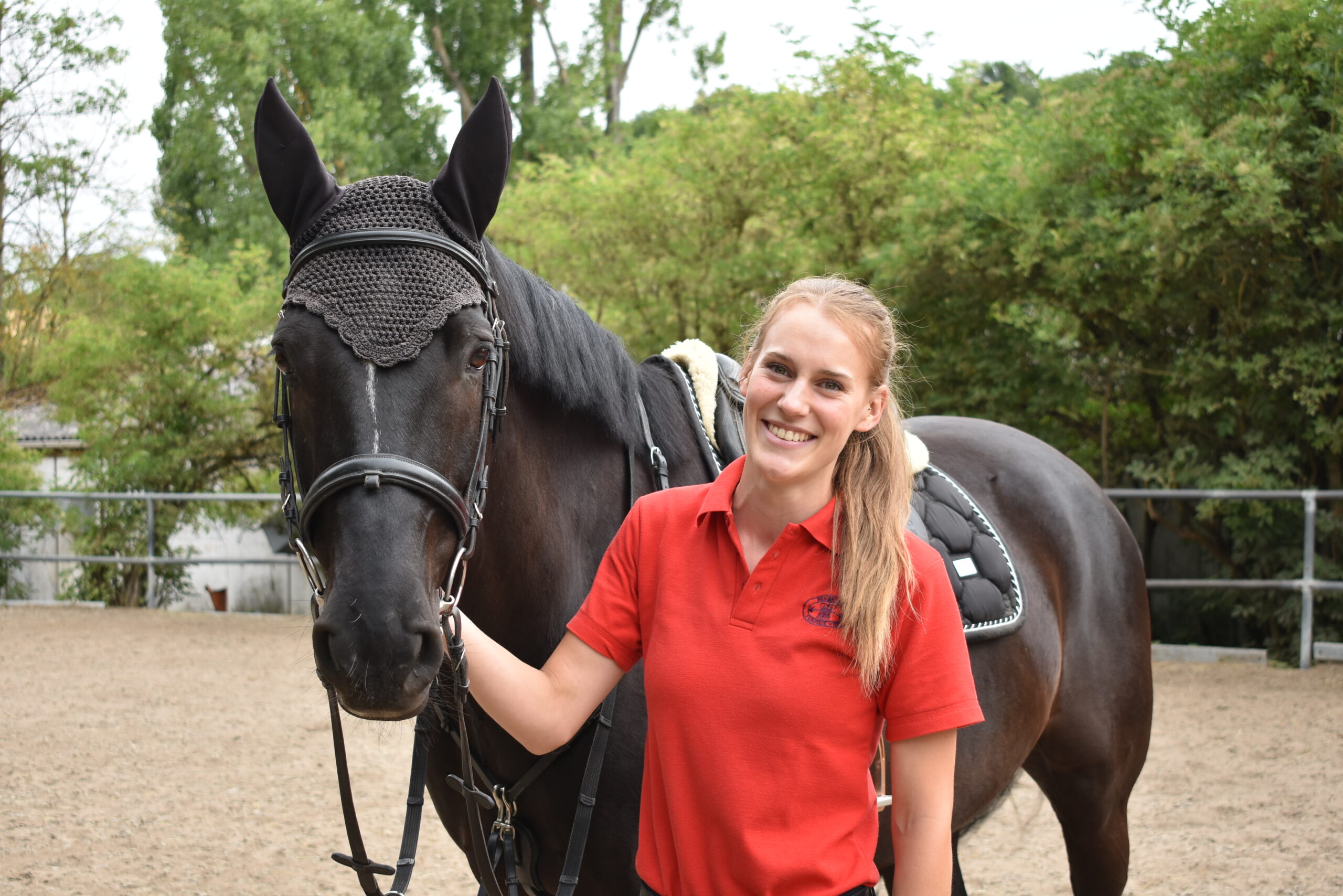 Auszubildende Pferdewirtin Haltung und Service im zweiten Lehrjahr.